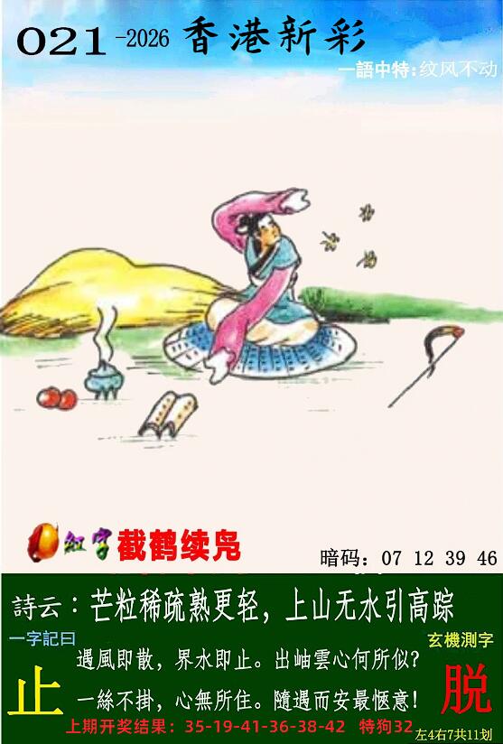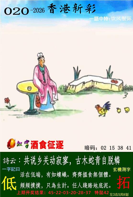 | 020期: ⑥肖 | 兔龙蛇牛鸡猴 | 狗32 |
