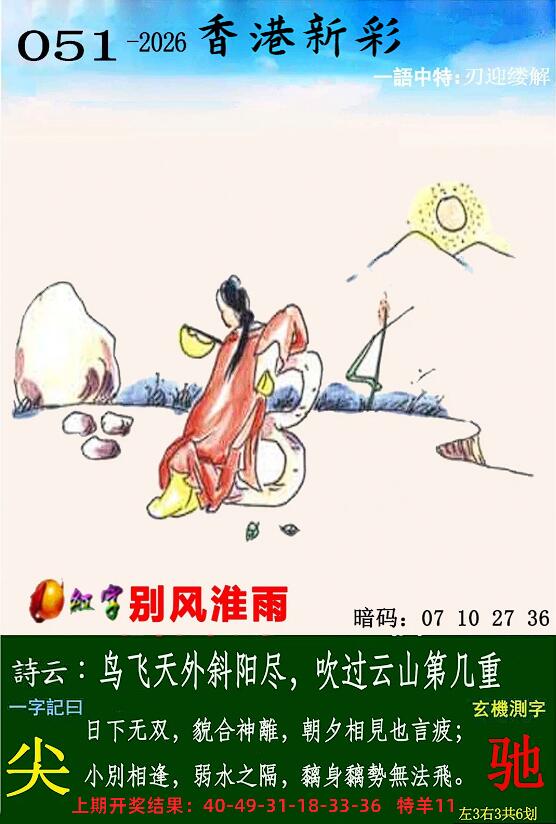 | 051期: ⑦肖 | 马龙鼠兔狗猴猪 | 羊12 |