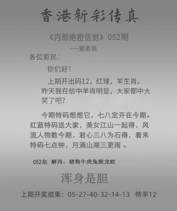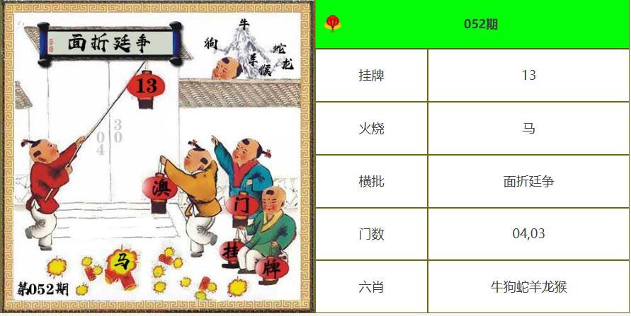 | 052期: ⑤肖 | 虎蛇狗牛猴 | 兔40 |