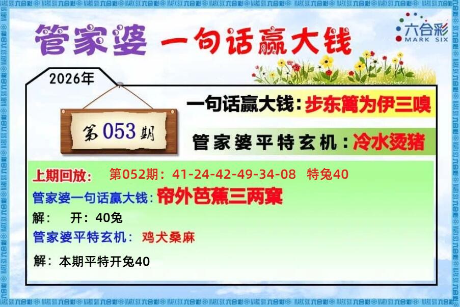 | 052期: ⑥肖 | 虎蛇狗牛猴猪 | 兔40 |